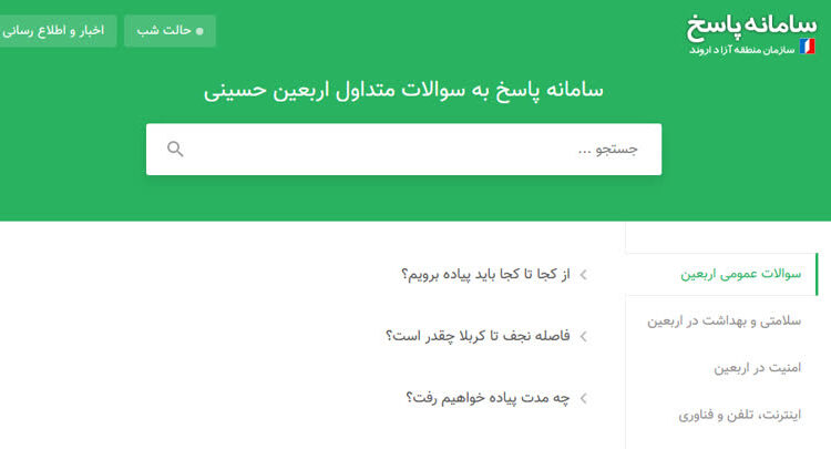 دسترسی به سامانه پاسخ به سوالات متداول اربعین حسینی