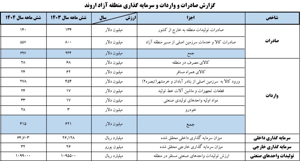 گزارش عملکرد اقتصادی منطقه آزاد اروند ( صادرات ، واردات، سرمایه گذاری داخلی و خارجی ، تولیدات واحدهای صنعتی)