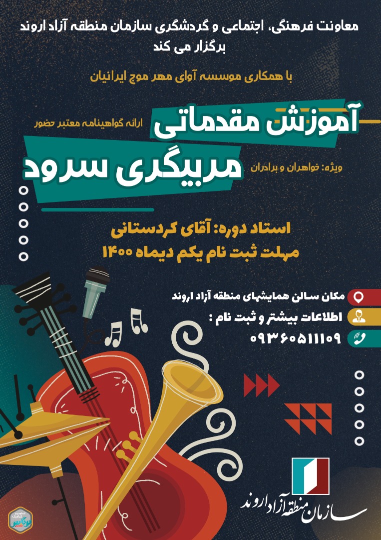 مدیرتوسعه فرهنگی و هنری سازمان منطقه آزاد اروند از برگزاری دوره مقدماتی مربیگری سرود به استادی افشین کردستانی خبر داد.