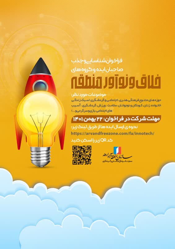 معاون فرهنگی، اجتماعی و گردشگری سازمان منطقه آزاد اروند، تصریح کرد: صاحبان ایده و گروههای خلاق و نوآور منطقه آزاد اروند میتوانند در بخش فرهنگی، هنری، اجتماعی و گردشگری در قالب حوزههایی از قبیل (سبک زندگی، خانواده، زنان، کودکان و نوجوانان، سلامت، ورزش، گردشگری، آسیبهای اجتماعی، بازی و سرگرمی) پروپوزالهای خود را در این فراخوان به اشتراک بگذارند.