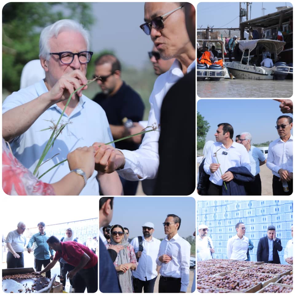 اعضای هیئت امروز با حضور در رودخانه بهمنشیر، روستای سادات و کارگاه خرما در روستای صیدوای آبادان، از نزدیک در جریان وضعیت زیستمحیطی، کشاورزی و اقتصادی منطقه قرار گرفتند. گفتوگو با ساکنان محلی، دیدار با شورا و دهیاری روستای سادات، بررسی اثرات جزر و مد بر آبیاری بیش از پنج هزار نخل، و بازدید از فعالیتهای صنایع دستی و بستهبندی خرما از جمله برنامههای این بازدید است.