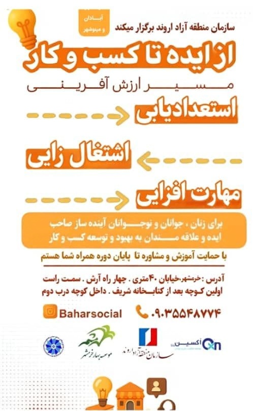 در راستای حمایت از ایدهپردازان و صاحبان استعدادهای نوآور، طرح «از ایده تا کسبوکار» با محوریت استعدادیابی، مهارتافزایی و اشتغالزایی، به همت سازمان منطقه آزاد اروند در شهرهای آبادان و خرمشهر برگزار میشود.