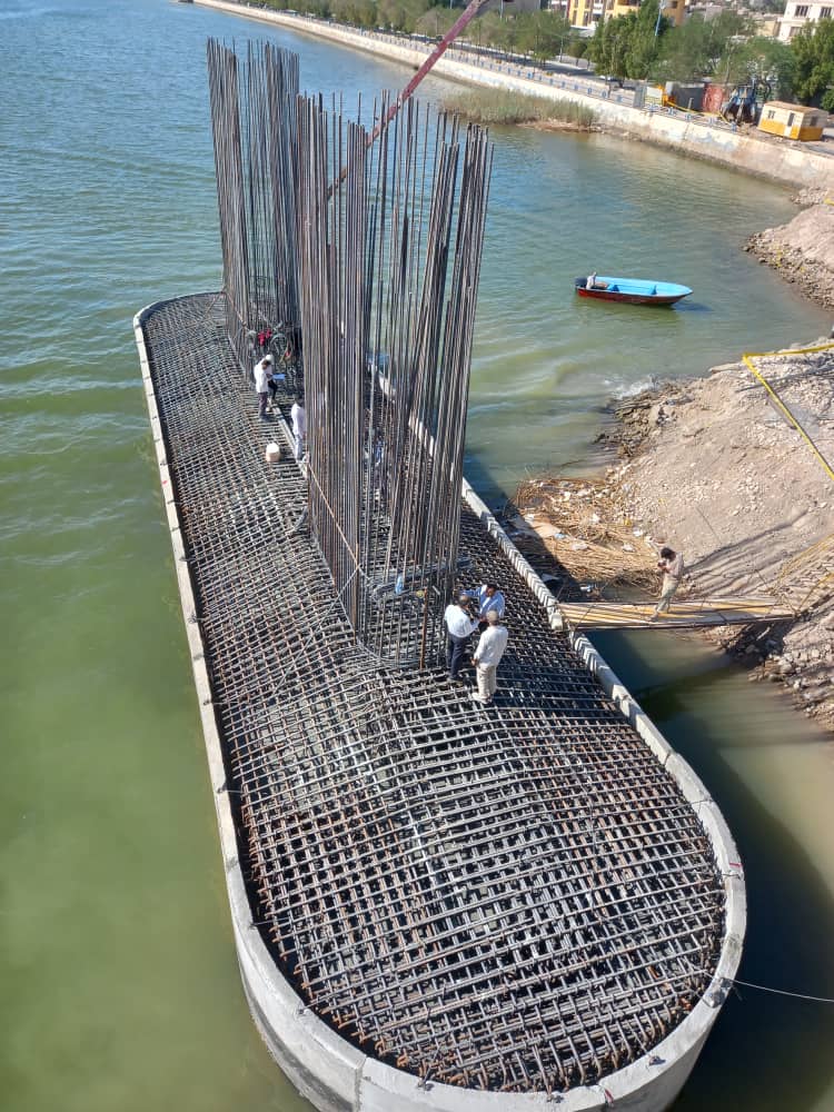 اولین پایه بتنی پل شهدای خدمت در رودخانه کارون قد برافراشت؛ عملیات ساخت به فاز نهایی رسید