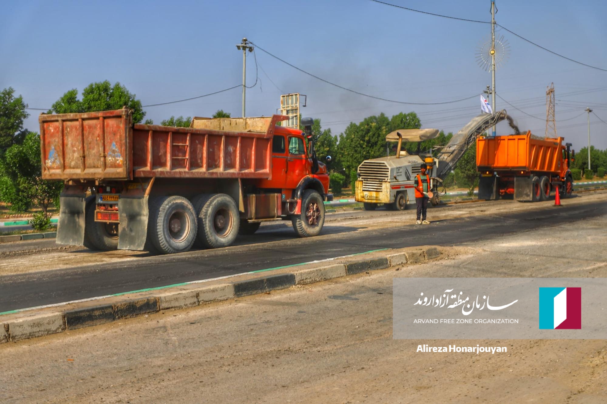 گزارش تصویری؛ اجرای عملیات زیرسازی و آسفالت ورودی جاده آبادان _ اهواز و منطقه معمره صنگور خرمشهر توسط معاونتعمران و زیربنایی سازمان منطقه آزاد اروند