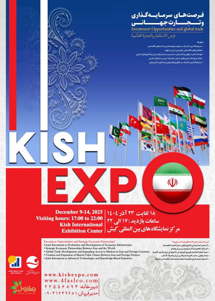 نمایشگاه بینالمللی کیش اکسپو 2025 با حضور گسترده فعالان اقتصادی، هیاتهای سرمایهگذاری خارجی و پاویون مناطق آزاد کشور، به عنوان مهمترین رویداد تعاملات تجاری و فرصتهای سرمایهگذاری سال در جزیره کیش برگزار میشود.