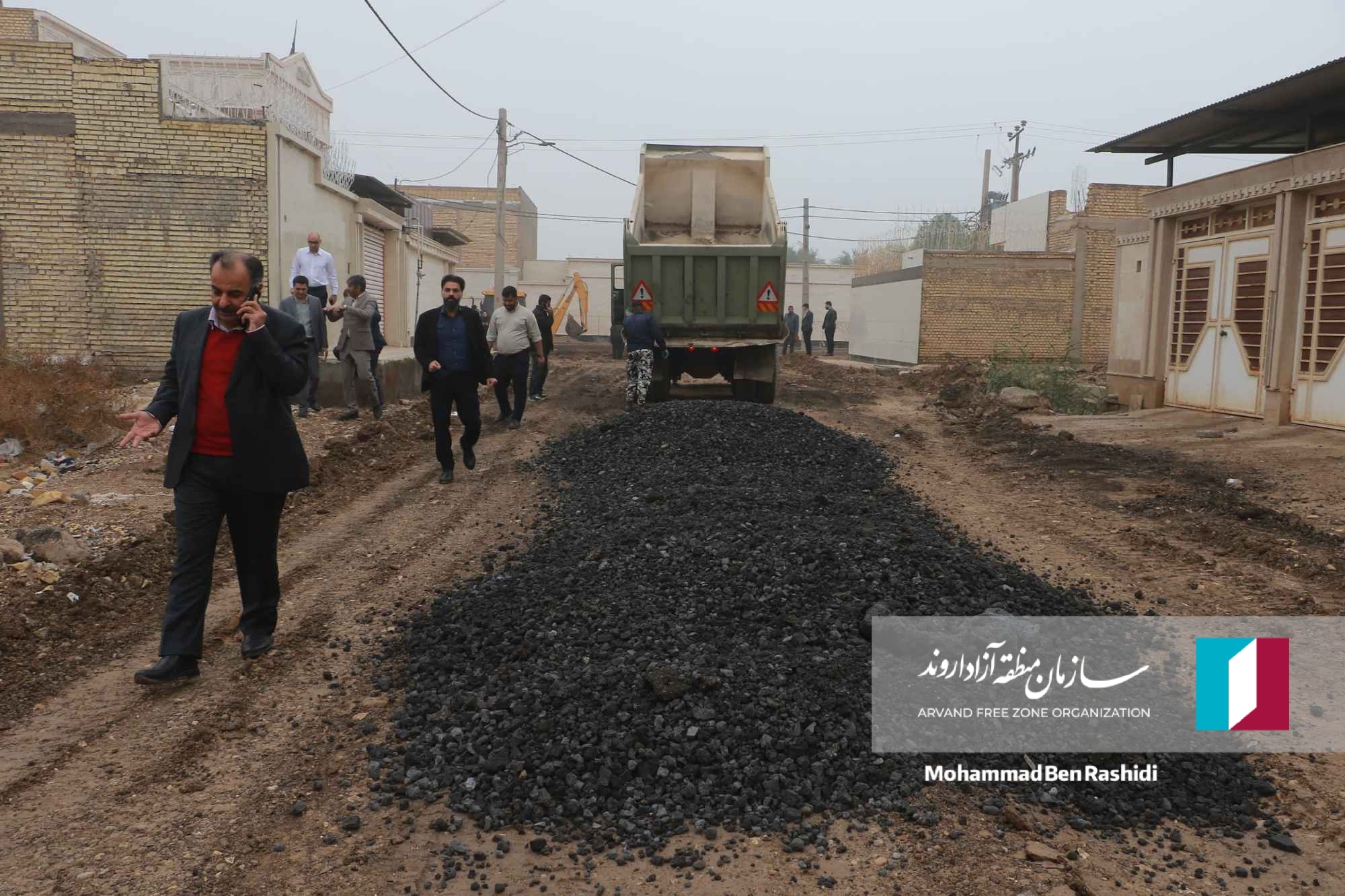 بازدید معاون عمرانی سازمان منطقه آزاد اروند از عملیات بهسازی و آسفالت ۳۰ معبر کوی نیرو
