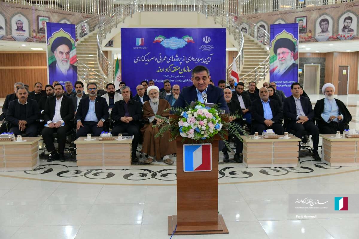 مصطفی خانزادی، مدیرعامل و رئیس هیأتمدیره سازمان منطقه آزاد اروند، در این آیین ضمن تبریک اعیاد شعبانیه و فرارسیدن دهه مبارک فجر، با اشاره به جایگاه تاریخی و راهبردی آبادان و خرمشهر اظهار داشت: منطقه آزاد اروند بهعنوان پرجمعیتترین منطقه آزاد کشور با بیش از ۵۰۰ هزار نفر جمعیت و دومین منطقه آزاد از نظر وسعت با بیش از ۳۴ هزار هکتار، از ظرفیتهای ارزشمند اقتصادی، تجاری و فرهنگی برخوردار است و همجواری با کشور دوست عراق و کویت، موقعیت ممتازی برای توسعه مبادلات منطقهای فراهم کرده است.