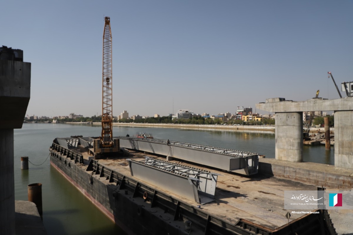 یک گام دیگر به سوی آینده؛ تصاویر فرآیند نصب عرشههای پایانی پل شهدای اروند در خرمشهر