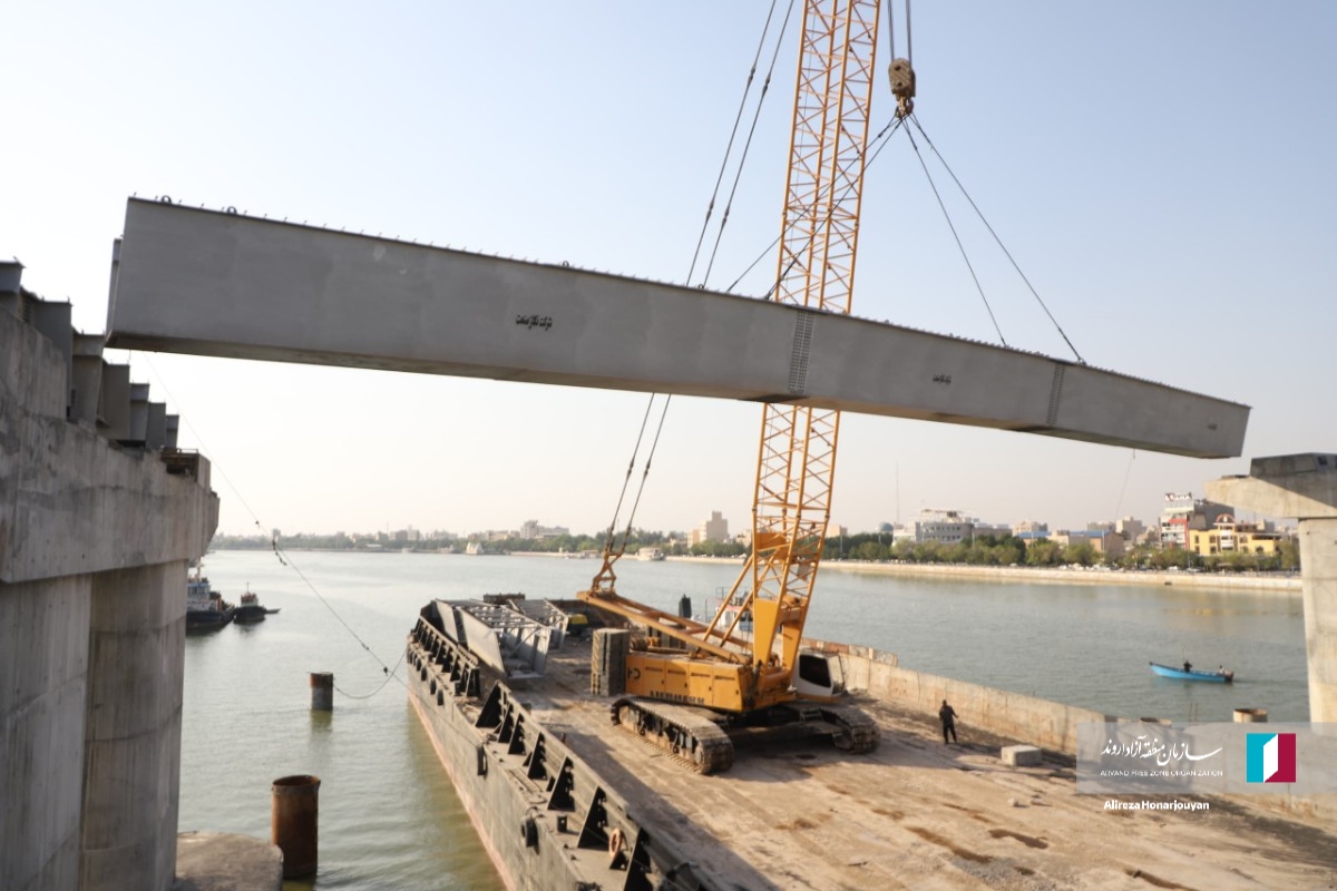 یک گام دیگر به سوی آینده؛ تصاویر فرآیند نصب عرشههای پایانی پل شهدای اروند در خرمشهر