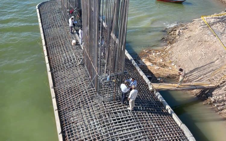 اولین پایه بتنی پل شهدای خدمت در رودخانه کارون قد برافراشت؛ عملیات ساخت به فاز نهایی رسید